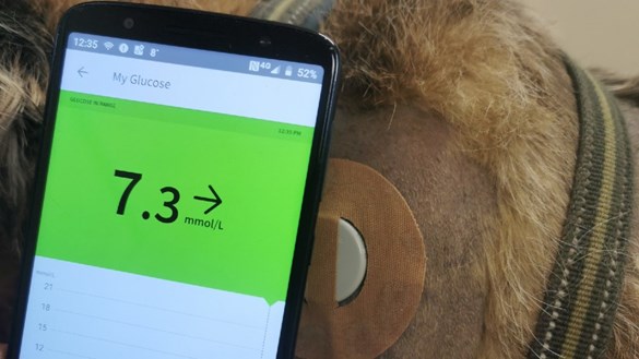 Veterinary surgeon Dr Kiah Hann worked through the various options with Rory’s owners. Her recommendation was a hi-tec glucose monitoring system developed for humans called FreeStyle Libre Sensor.
