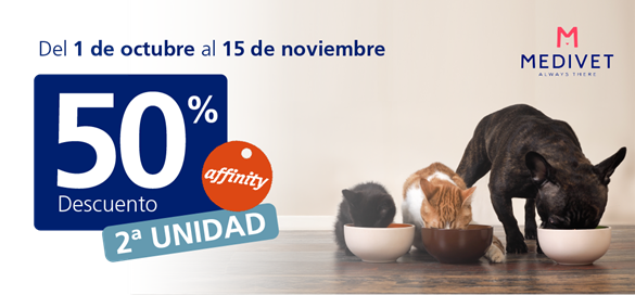 Del 1 de octubre al 15 de noviembre, en los centros Medivet Babel, Sur Vallecas, Puerto del Rosario, Layos, Santa Catalina y Almatriche podrás disfrutar de una promoción especial en alimentación Affinity.